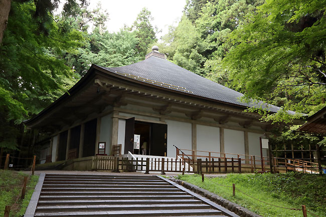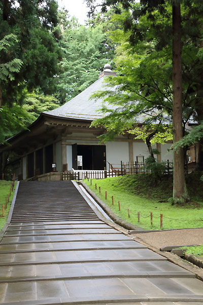 7月の連休に、大船渡の友人を訪ねた際、25年ぶりに中尊寺も訪問しました。まだ梅雨は明けていませんでしたが、参詣した日は晴れて暑いくらいでした。世界遺産に選ばれたことで、人が多いのではと思い、朝8時過ぎに駐車場に到着、すでに多くの参拝客が月見坂を登っていくのが見えました。とはいえ、静かなうちに山寺の雰囲気を楽しみながら回ることができました。 |