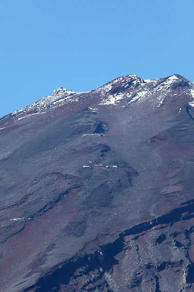 御殿場登山口へ行く途中、自衛隊の演習場のあたりで撮影。雪は、東側の斜面にすこしあるだけで、南側はほとんど積もっていません。