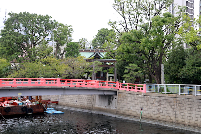 旧東海道が目黒川を渡る品川橋の近くにあるのが荏原神社で、神輿の海中渡御で有名です。 |