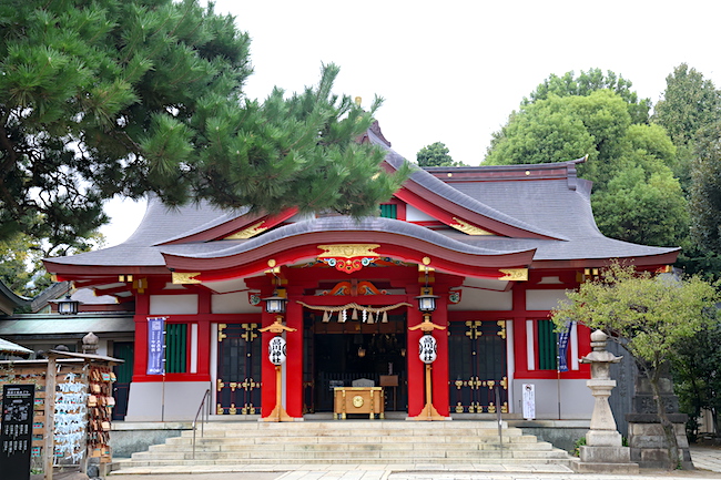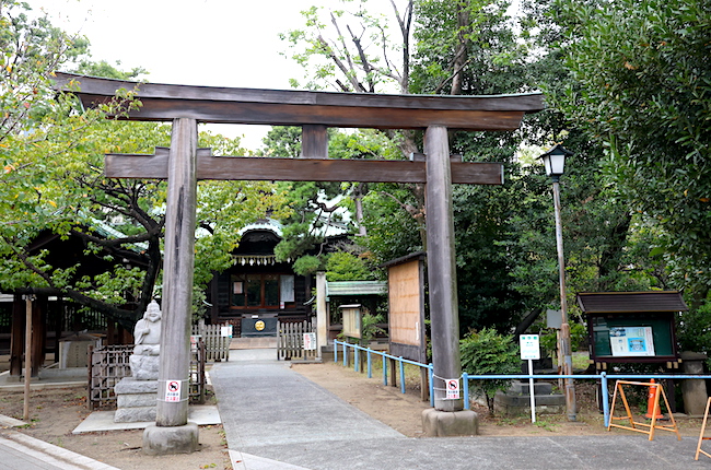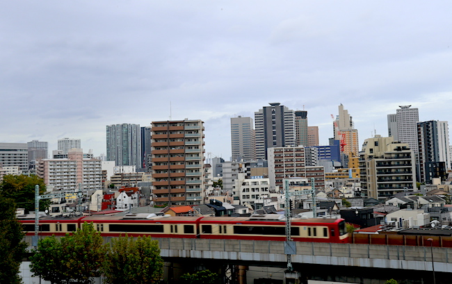 国道15号沿いにある品川神社には富士塚があり、登ると眼下に京急線やビルの並ぶ町並みを見ることができます。 |