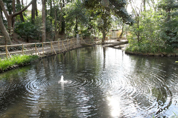 | 薬王院から下ってきたところに野鳥公園があります。ここも斜面の下から水が湧き出ており、池となって流れ出ています。 |