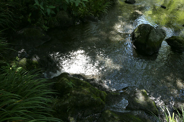 | 駅のすぐ前に楽寿園という庭園があり、ここでも湧水が見られます。明治時代は皇族の別宅であったのを公園として開放されたもので、それほど広くはないのですが、自然が残されています。 |
