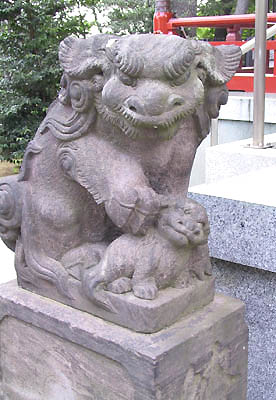 世田谷区にある玉川神社も子持ち狛犬 | ||||