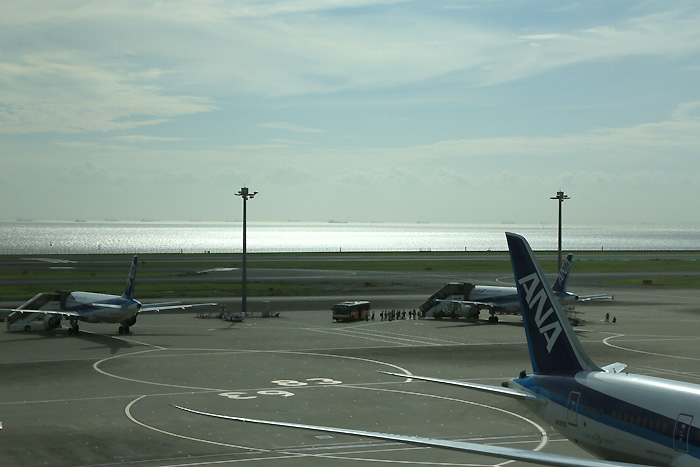 | 羽田では、いつも展望階にある喫茶店で朝食をとり、そこから窓越しに写真を撮るのが恒例になってしまいました。 |