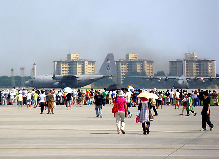 | 2010年8月に横田基地で行われた友好祭で撮影した写真です。日本国内で治外法権となっている基地の中がどうなっているのか、一度自分の目で確かめたくて、炎天下の中を歩き回りました。実際に見た感想は、思っていて以上にだだっ広く、「まぎれもなく外国だ」ということでした。 軍事オタクと間違えられるので、あまり派手には撮影していませんが、普段見られないものが並んでいるという基地については、納税者として誰でもが一度見ておく必要があるかもしれません。 |