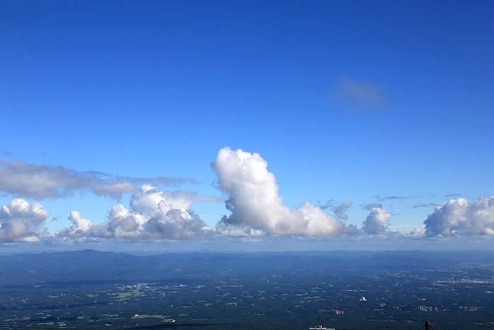ロープウェーで上がってすぐに雲立ちこめてしまい、山上からは思うような写真は撮れませんでした。結局、青空を撮影できたのは登る途中と、降りてからの展望台からでした。