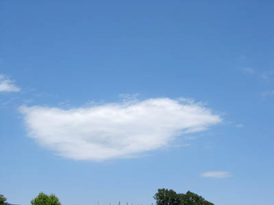 家の近所を散歩している時に空に浮かんでいた雲。のんびり進む船のようでした。