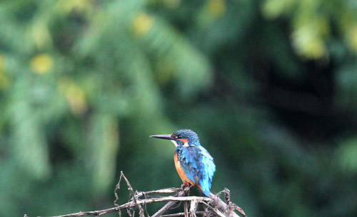 | 見多摩川の河原にある池に来るカワセミ。 上空が騒がしかったせいか、みな上を向いた写真になりました。(日野市) |